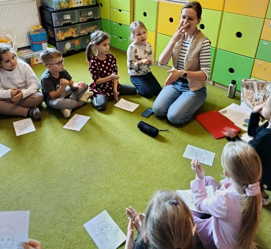 3. Kolory i zwroty grzecznościowe – nauka znaków migowych oraz metodyka – zabawy / gry / piosenki i inne praktyczne ćwiczenia umożliwiające wprowadzanie znaków migowych w codziennej pracy z dziećmi.